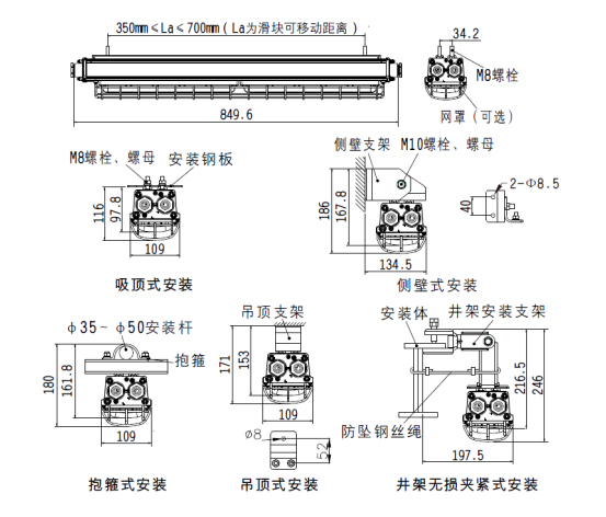 4 安裝方式多樣,可根據現場安裝需求,選用吸頂式、抱箍式、井架無損式、
